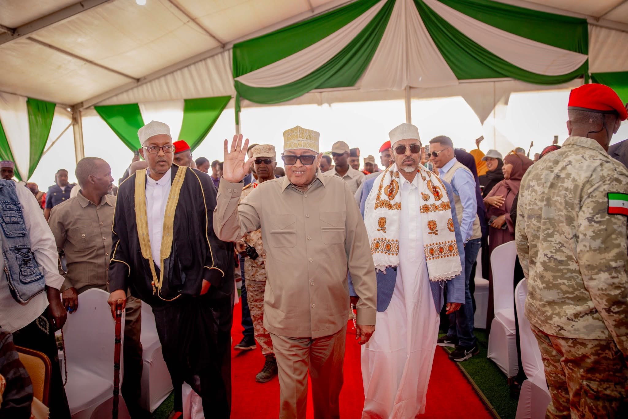 During the closing ceremony, President Irro was accompanied by Sultan Siciid Sultan Abdulsalaan and Ugaas Abdirashid Ugaas Rooble Ugaas Doodi. He praised the efforts of local elders and traditional leaders who played a central role in achieving reconciliation.